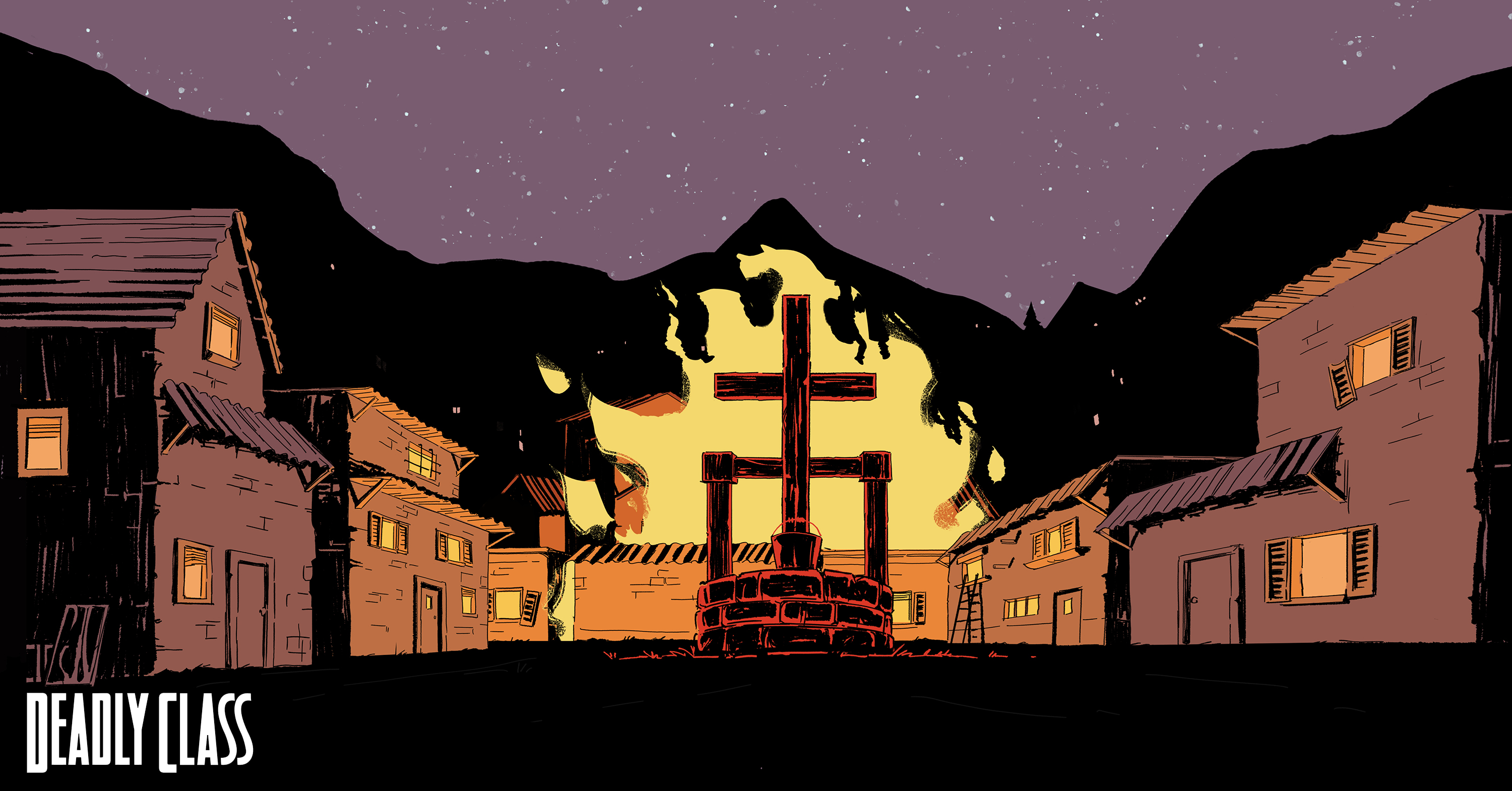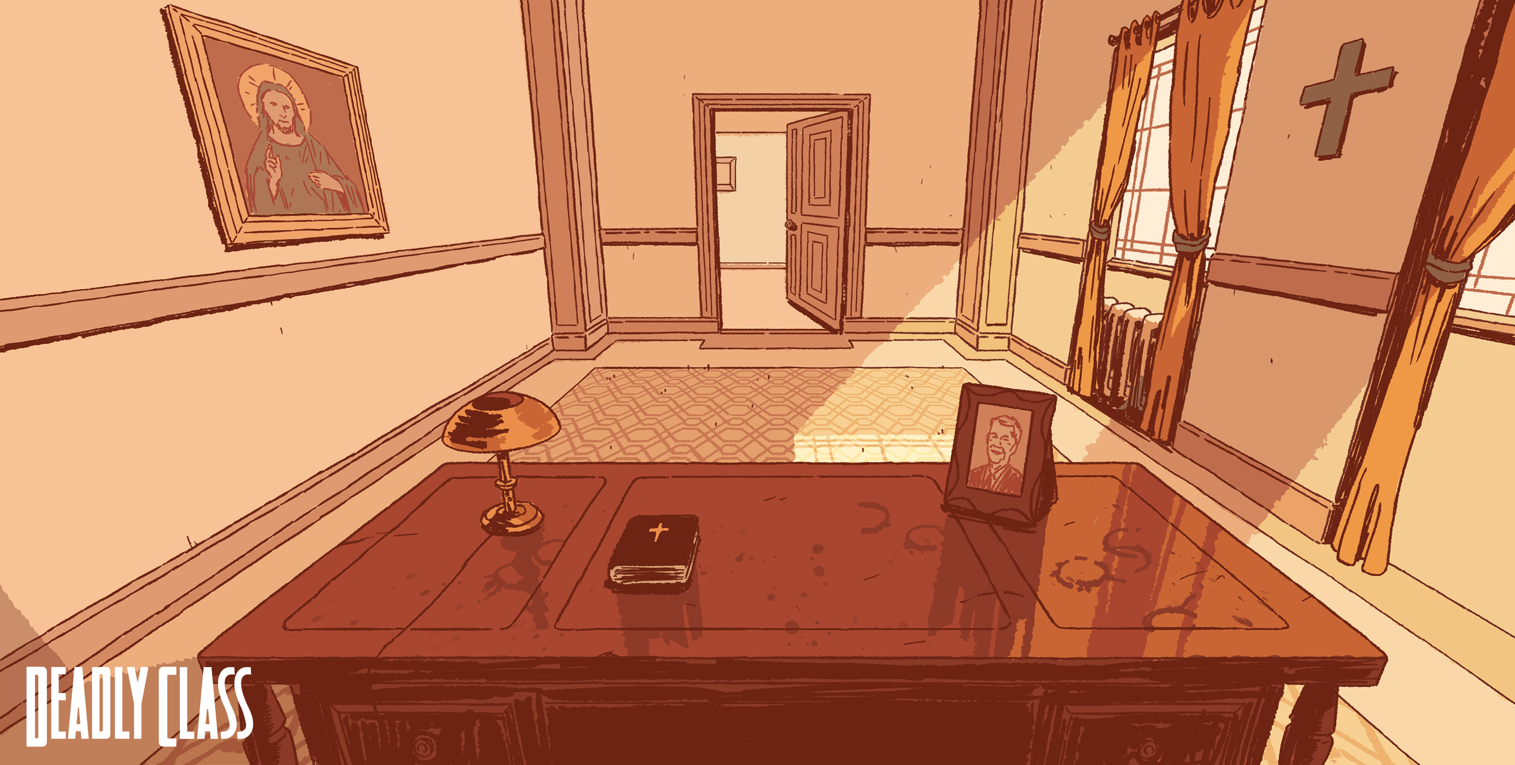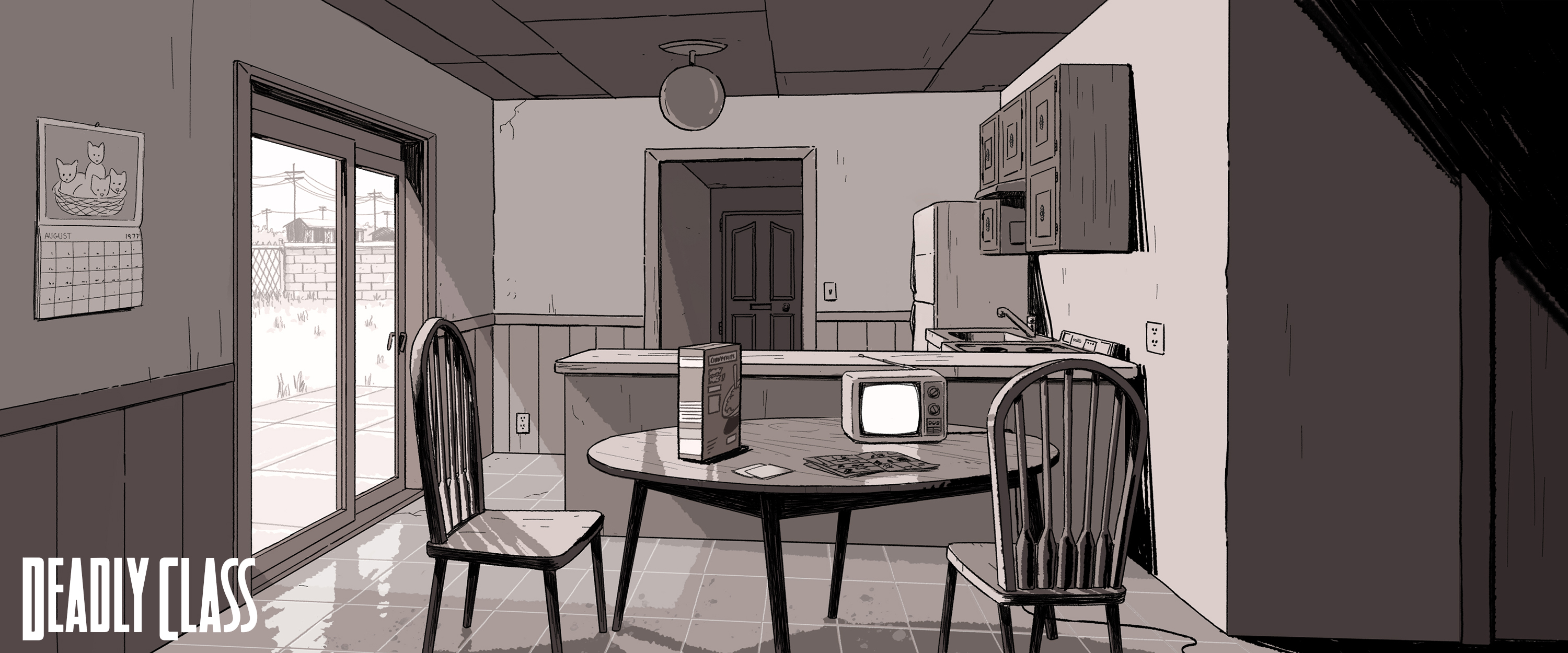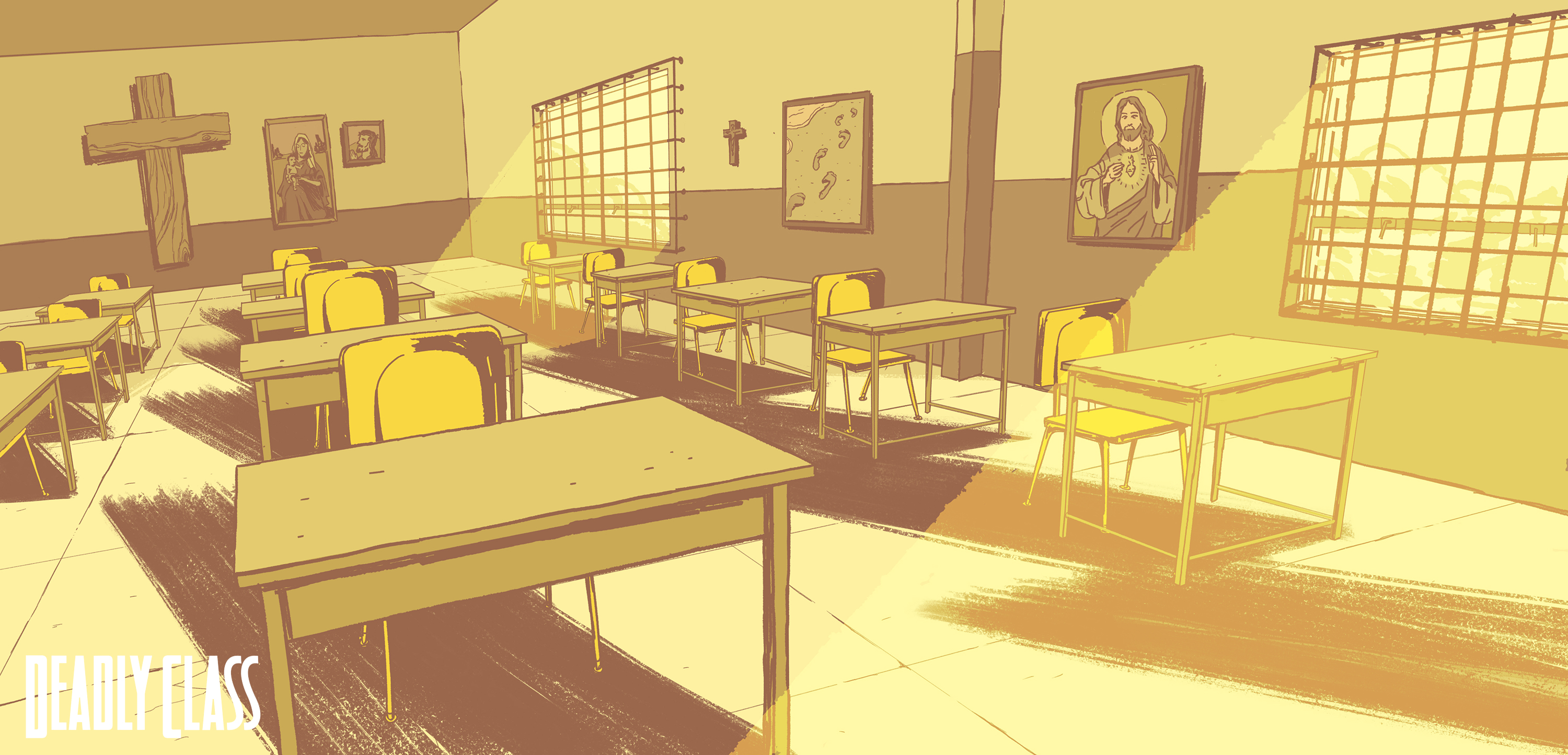 Background paintings from Syfy’s “Deadly Class.” Backgrounds designed by myself, Andy Brinkman, Sam Marlow, and Denny Fincke with Art Direction from Antonio Canobbio.